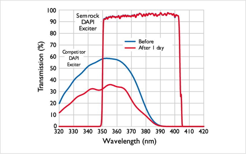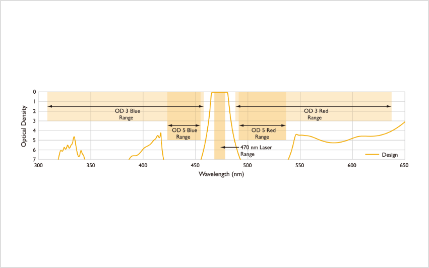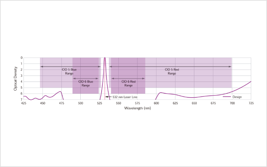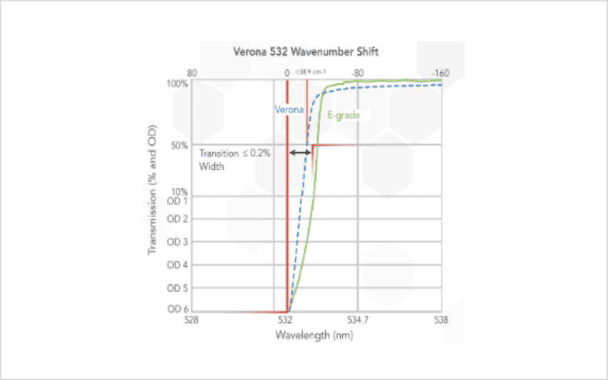 非常に急峻なエッジと高い透過率、非常に高いレーザー光ブロッキング値(OD>6)で、微弱なラマンスペクトルの検出を可能にします。