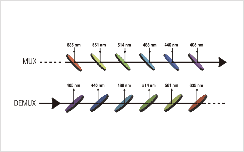 ロングウェーブパス仕様とショートウェーブパス仕様があり、組み合わせることで透過中心波長や透過帯幅をチューニングして、任意のバンドパスフィルターをデザインすることが可能です。